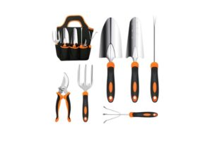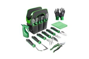 The tools are made from strong stainless steel, so they won’t rust or break easily. The non-slip ergonomic handles make them comfortable to hold, even when working for a long time. The included garden gloves help protect your hands from dirt and scratches.